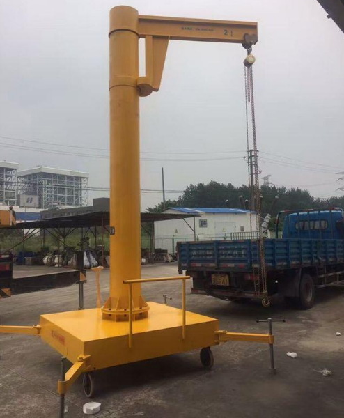 所以平时使用移动悬臂吊进行室外起重作业的时候一定要记得对悬臂吊进行锁止,无论是在作业过程中,还是在闲置状态下。移动式悬臂吊正是有了这个设计方案,才解决了在坡度路面的溜车问题,保证了室外作业的安全进行。