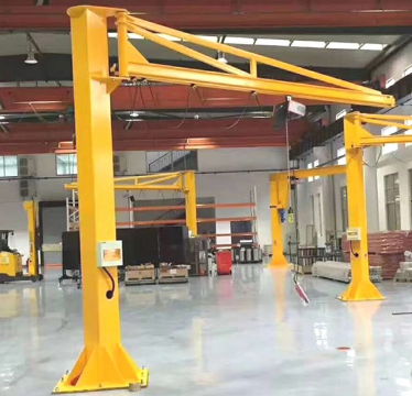 悬臂起重机主要结构特点是悬臂固定在立柱,或者墙体上,悬臂可以自由旋转0-360°,通常为180°,270°,360°。