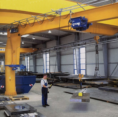 悬臂吊在进行钢板吊运的时候通常会使用到永磁起重器,永磁起重器是一种轻小型起重设备,依靠自身的磁性对重物进行吸附,不过永磁起重器并不具备起升的功能,所以悬臂吊成为了永磁起重器起重,转移的不二之选。